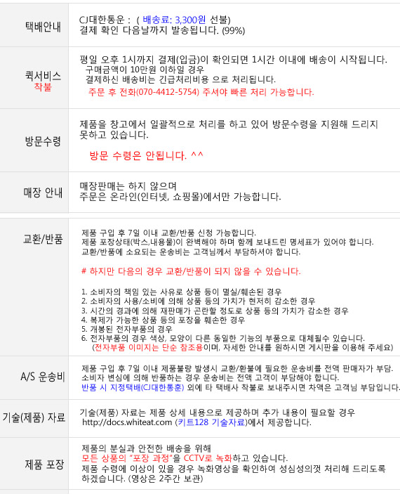 3. 해외 내수품인 관계로 A/S에 대해서는 별도의 책임을 지지 않습니다.